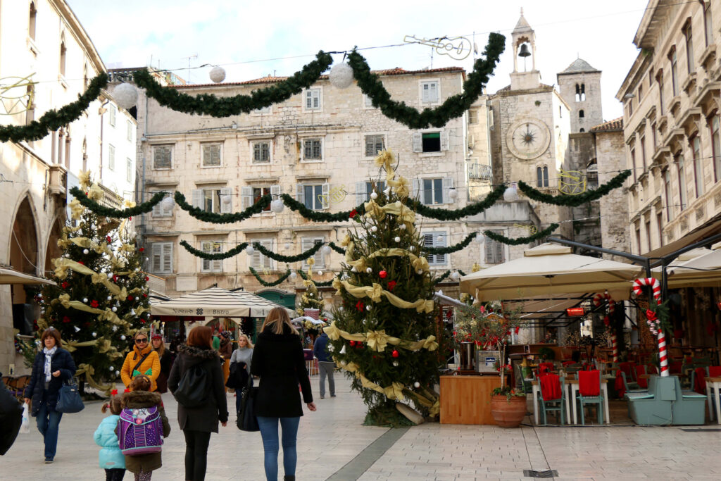 Die Weihnachtsmärkte in Split zählen zu den schönsten in Kroatien. Der Hauptmarkt befindet sich direkt am Diokletianpalast und auf der Riva, dem zentralen Treffpunkt der Stadt während der Adventszeit. Hier können Besucher lokale Souvenirs, Kunsthandwerk, Adventsgebäck, Glühwein und andere Köstlichkeiten erwerben. Die Marktstände bieten Produkte aus der Region, darunter dalmatinische Spezialitäten, Süßwaren und handgemachte Geschenke.