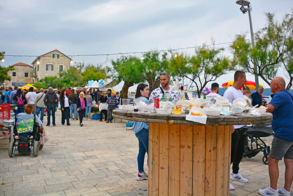 Die Idee ist einfach: Frischer Fisch wird gegrillt, dazu gibt es Weißwein oder Rakija, Live-Musik spielt, und auf den Straßen wird getanzt. Häufig sind es kleine, kostenlose Feste, organisiert von Fischervereinen oder Gemeinden. Typische Gerichte sind Sardinen vom Grill, Scampi „na buzaru“ (in Knoblauch-Tomatensauce) oder Fischsuppen.