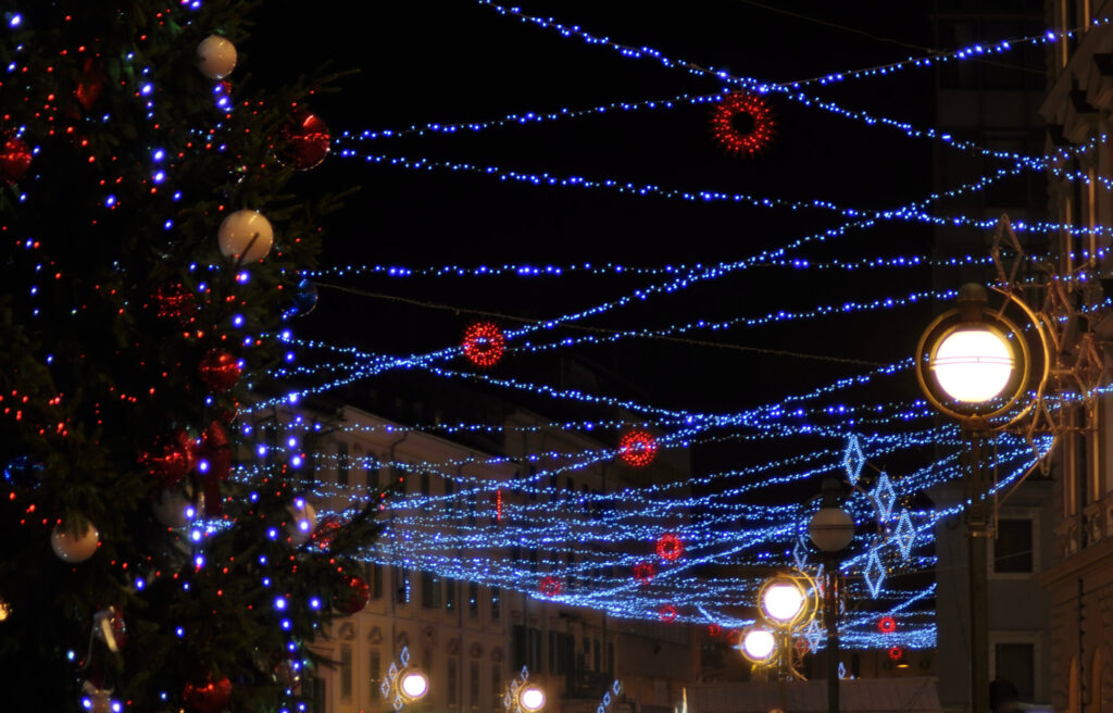 Die Weihnachtszeit in Rijeka beginnt bereits Ende November. Ab diesem Zeitpunkt verwandelt sich die Stadt in ein Adventsparadies mit Lichterketten, Musik und Märkten. Der Korzo erstrahlt im Glanz von über 500.000 Lichtern, während auf kleinen Bühnen Musiker auftreten und Kinderchöre singen.